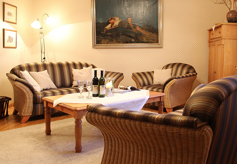 Das gemütliche Wohnzimmer mit Kaminofen, SAT-TV, DVD-Player und einer Minianlage (Auswahl von DVD`s und CD`s vorhanden) ist der Treffpunkt für alle Gäste.